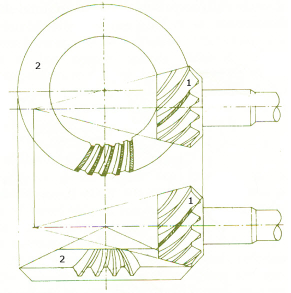 برای دستیابی به اهداف یک و دو از یک جفت چرخ دندة مخروطی با پروفیل دندة هیپوئید ، مطابق شکل (1) استفاده می شود .